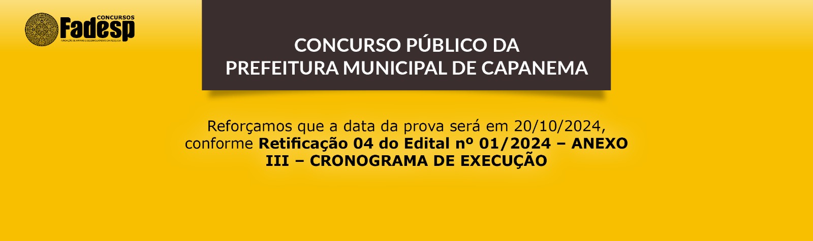 CONCURSO PÚBLICO DE CAPANEMA: a prova será em 20/10/2024
